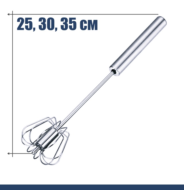 Доступны размеры, длина венчика 25, 30 и 35 см. Не требует особого ухода, легко мыть. Материал: нержавеющая сталь. Сделано в Китае.