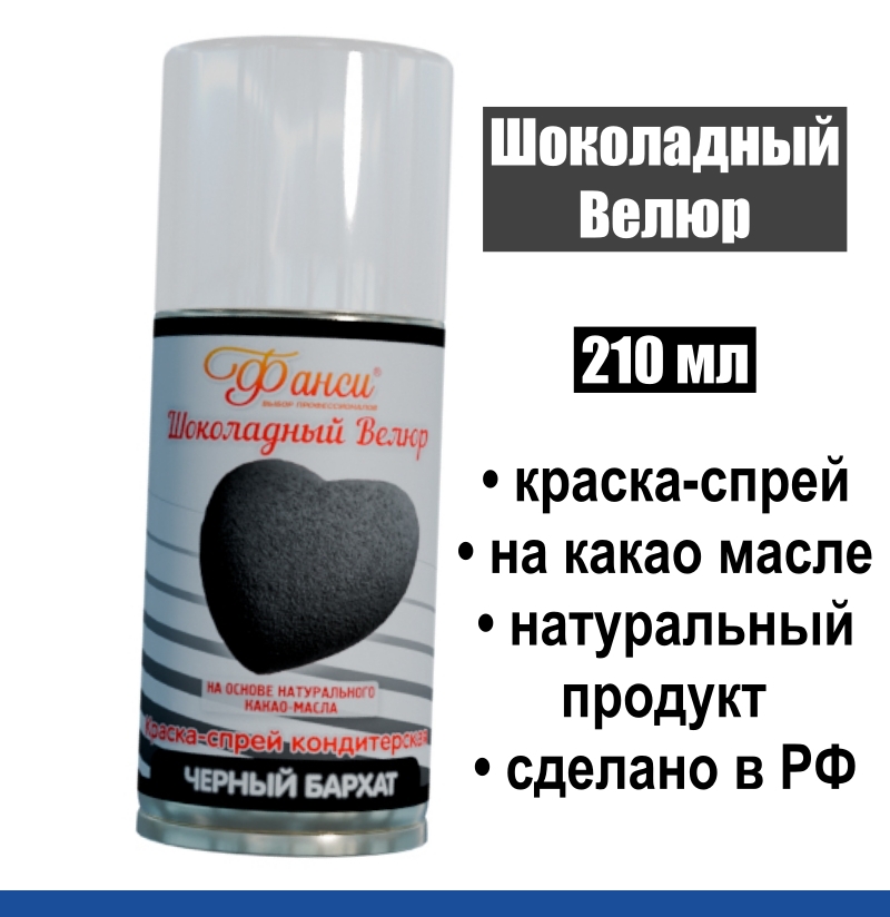 Если вас интересует один из этих запросов: шоколадный велюр; шоколадный велюр для торта; шоколадный велюр в баллончиках; шоколадный спрей велюр; покрытие шоколадный велюр; шоколадный велюр без краскопульта; велюр из шоколадной глазури; крем шоколадный велюр; краситель для шоколада; жирорастворимый краситель; велюр для шоколада; краситель для шоколада; краска-спрей пищевая; краска-спрей шоколадная; велюр для муссов - вы обратились по адресу, знаем о шоколадном велюре всё, какой и для чего!
